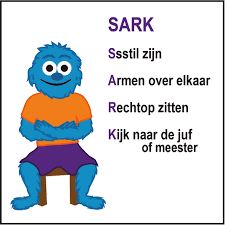 In groep 3 moet je vaak Stil zijn, Armen over elkaar doen, Rechtop zitten en Kijken naar de juf. Dit noemen we SARK. Een heel belangrijke regel, wanneer kinderen zo zitten kunnen ze beter opletten en leren ze dus meer. We doen natuurlijk ook veel spelletjes tussendoor waarbij de kinderen veel mogen bewegen en praten.